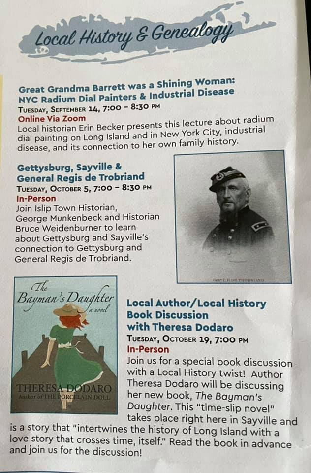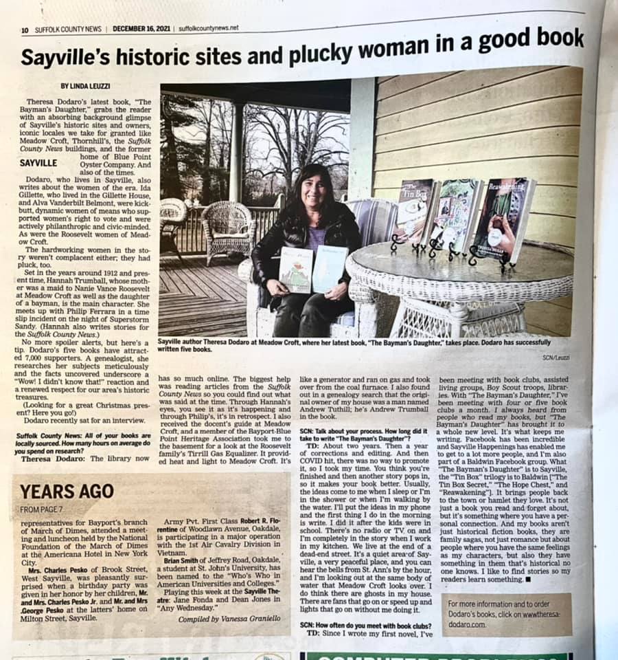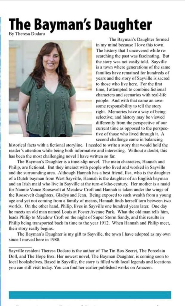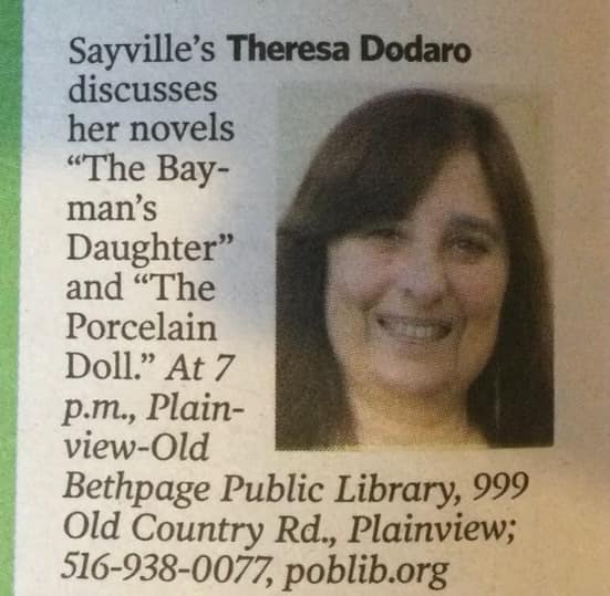 My novel, The Bayman’s Daughter, is now available at Steve Israel’s bookstore, Theodore’s Books, in Oyster Bay!