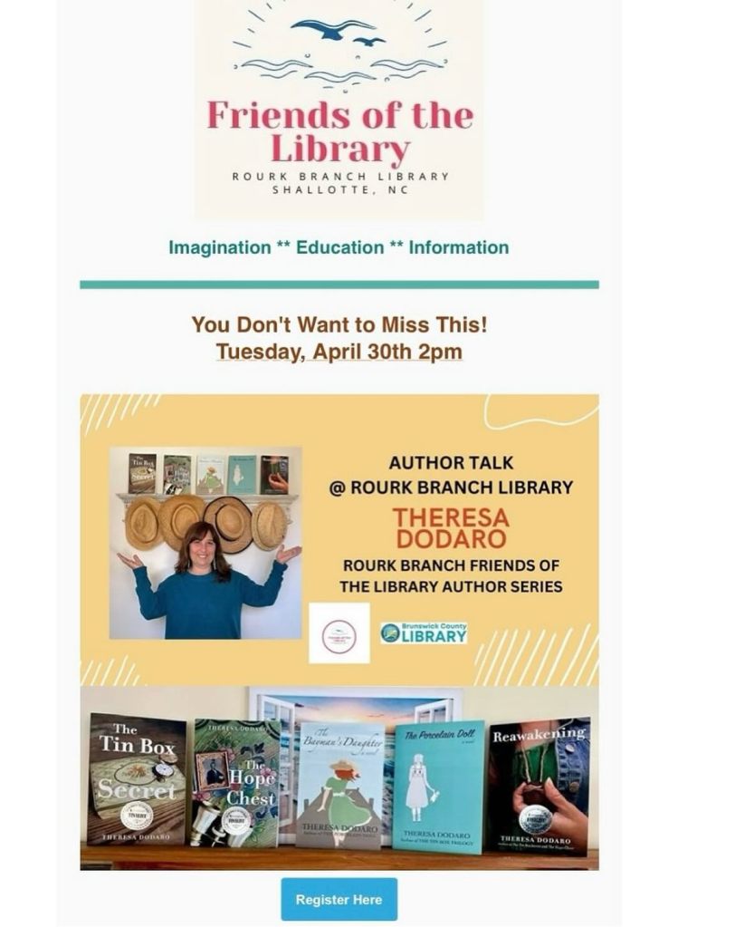Author Book Talk at Rourk Library with The Friends of the Library in Shallotte, North Carolina: