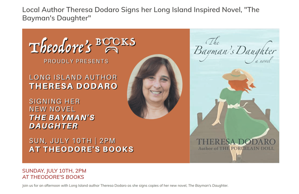 Sunday, July 10, 2022: Book Signing at Theodore’s Bookshop @ 2 P.M., 17 Audrey Avenue, Oyster Bay, NY 11771 (516) 636-5550